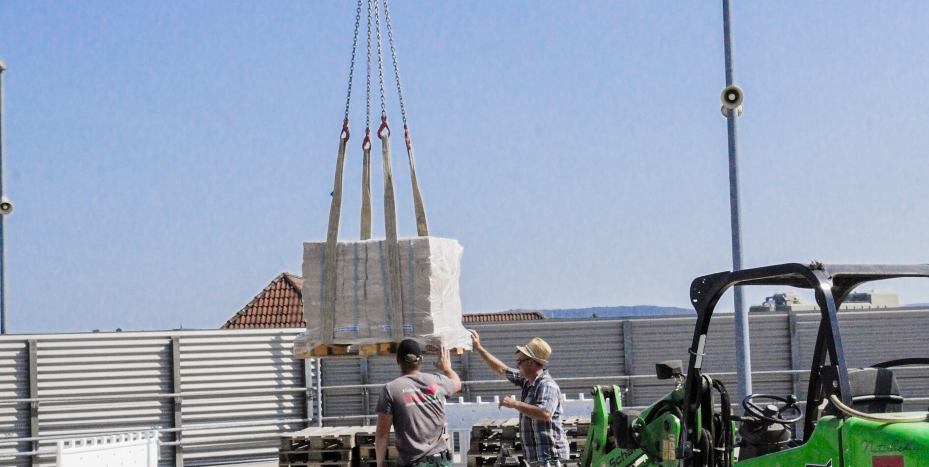 Zum Auftakt wurden mit Hilfe eines Krans umfangreiche Materialien auf das Parkdeck gehoben – ein wichtiger erster Schritt zur Einrichtung der Baustelle und für die kommenden Arbeiten.